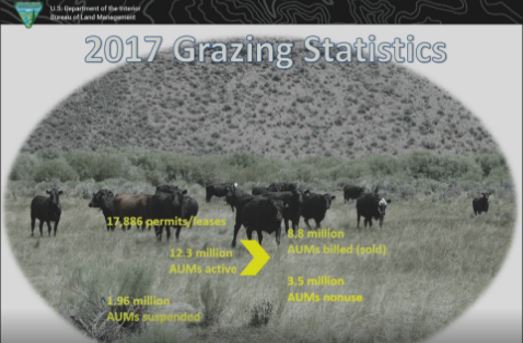 Also presented at the meeting were some stats on livestock in 2017. The BLM livestock page provides the available land.