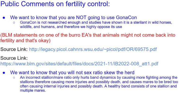 The SOWH call to action tells you to oppose GonaCon, which may act as a sterilant.
