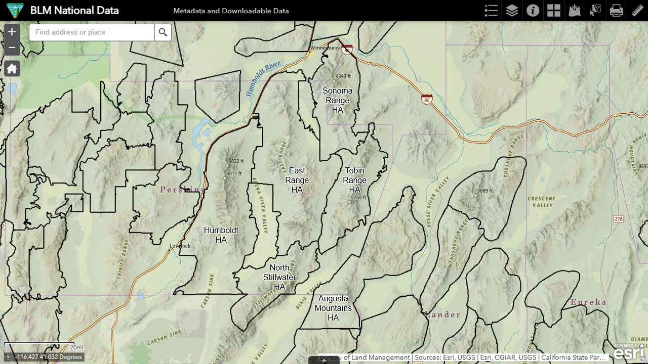 - Scope: Sonoma Range HA, East Range HA, Humboldt HA, Tobin Range HMA, North Stillwater HMA, Augusta Mountains HMA