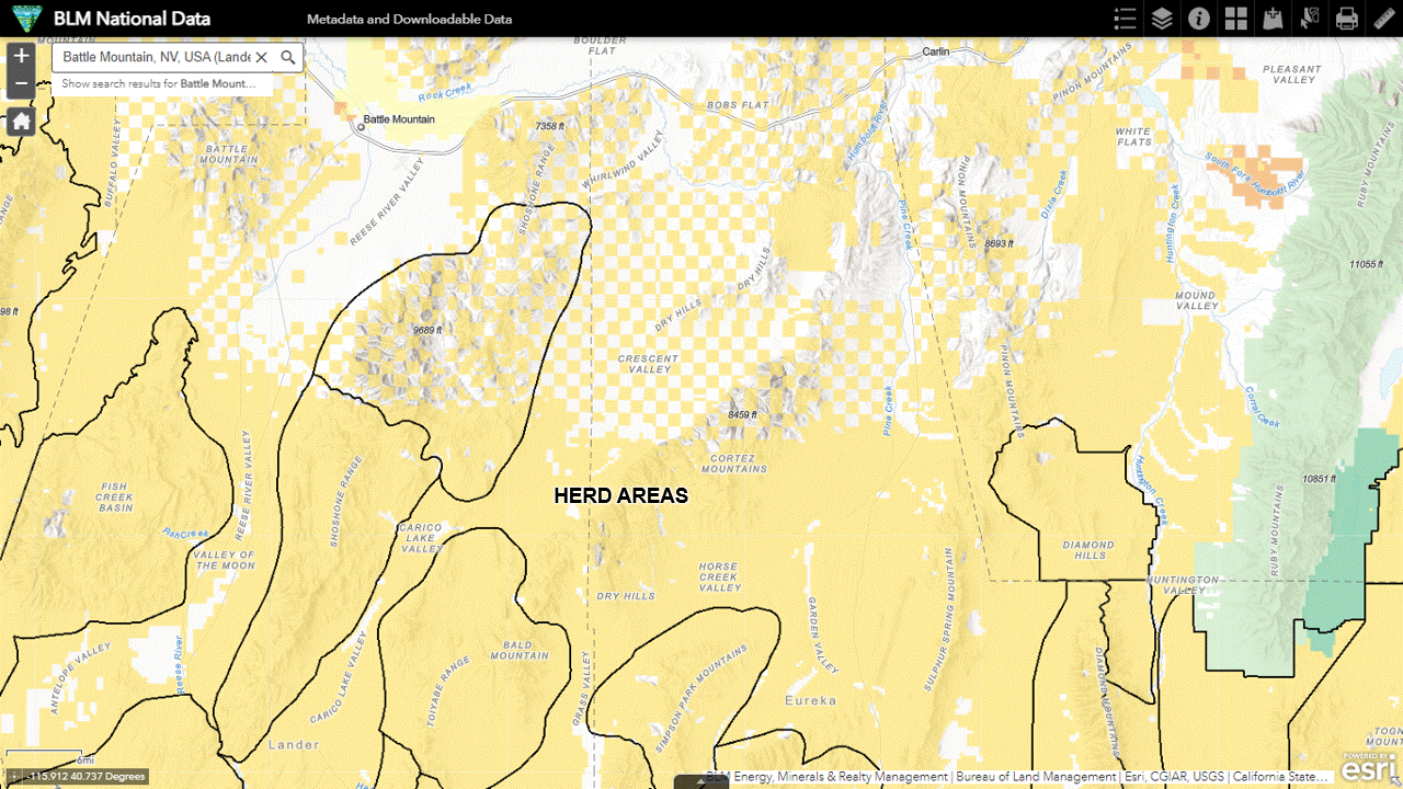 The mine is hard to find in the National Data Viewer if you’re looking at the wild horse areas but if you turn on the grazing allotments it’s a piece of cake.