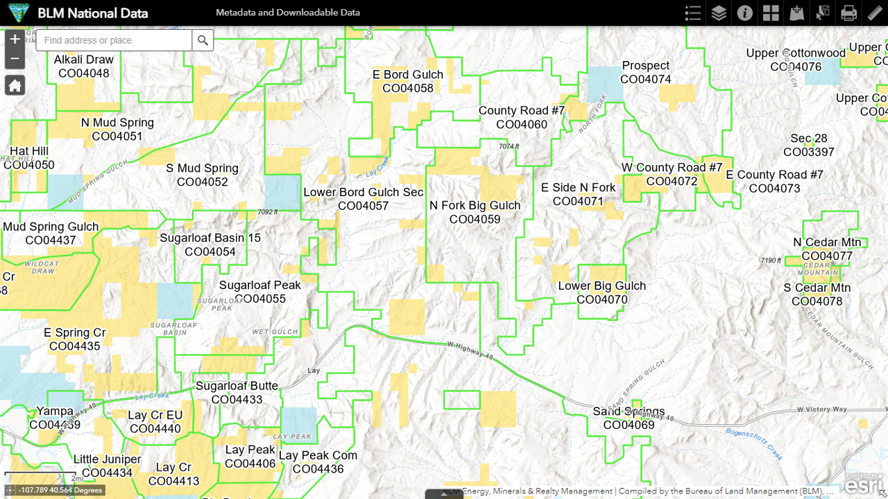 The Allotment Master Report indicates that most of the acreage is private, denoted by white in the map below, which may explain why there was little if any disagreement about giving up a few small parcels to help get more wild horses off the public lands in Colorado.