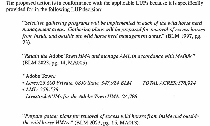 The DNA Worksheet refers to the 2023 Record of Decision and Approved Resource Management Plan Amendment for Wild Horse Management, the “Other Document” listed at the beginning of Section B.